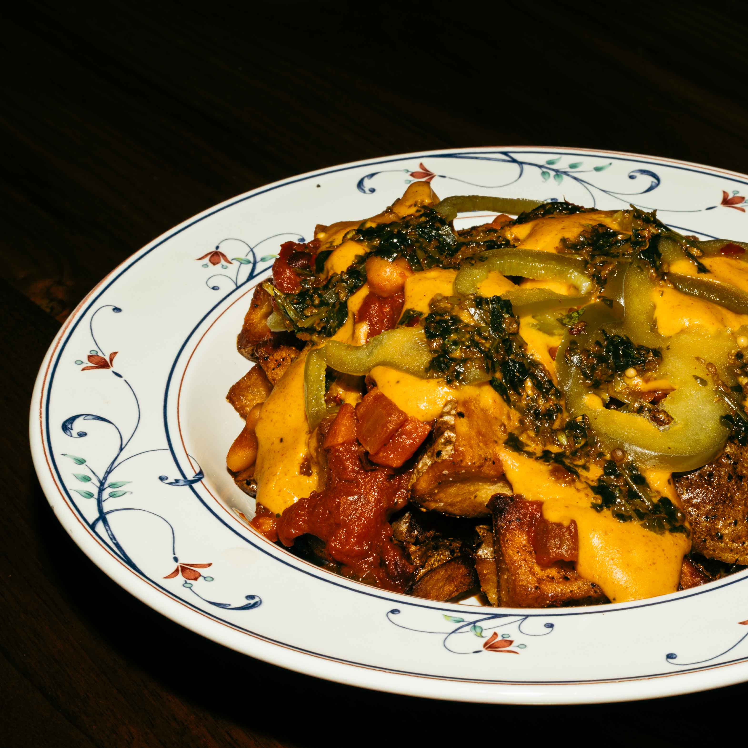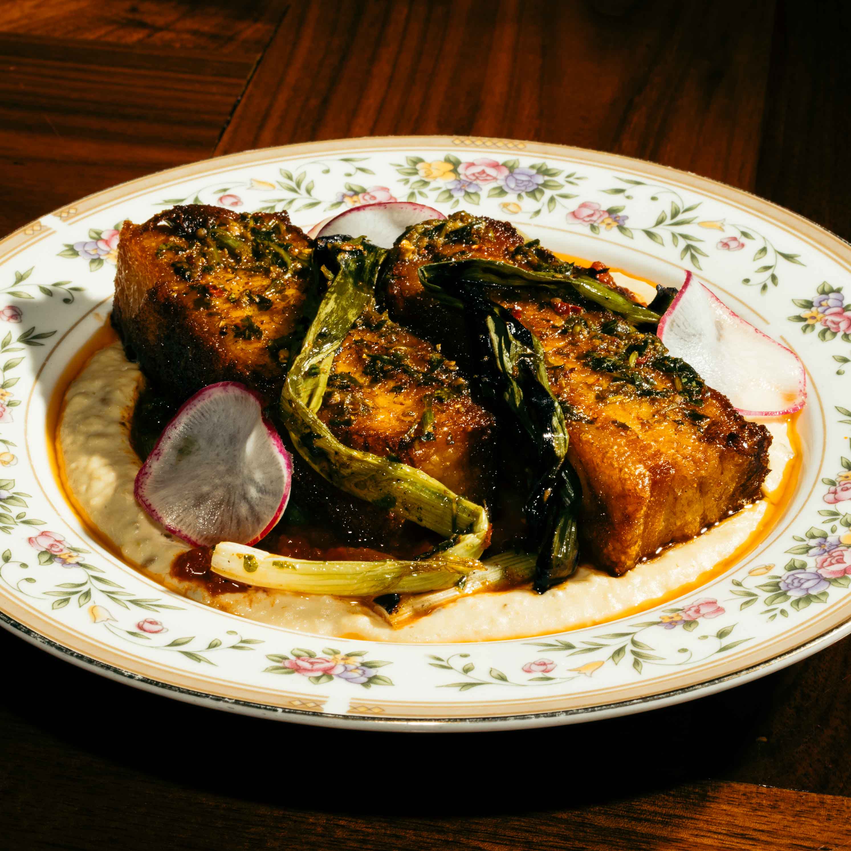 Hummus, Bean Ragu, Chermoula, Grilled Scallion Vegan Available (Sub Portabello Cap)