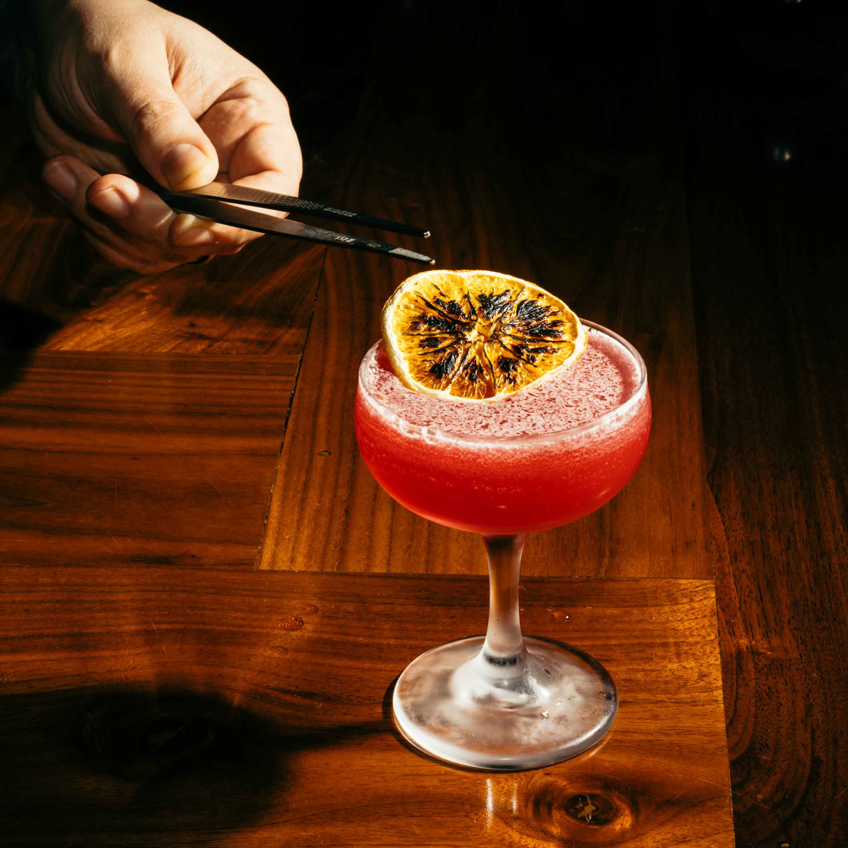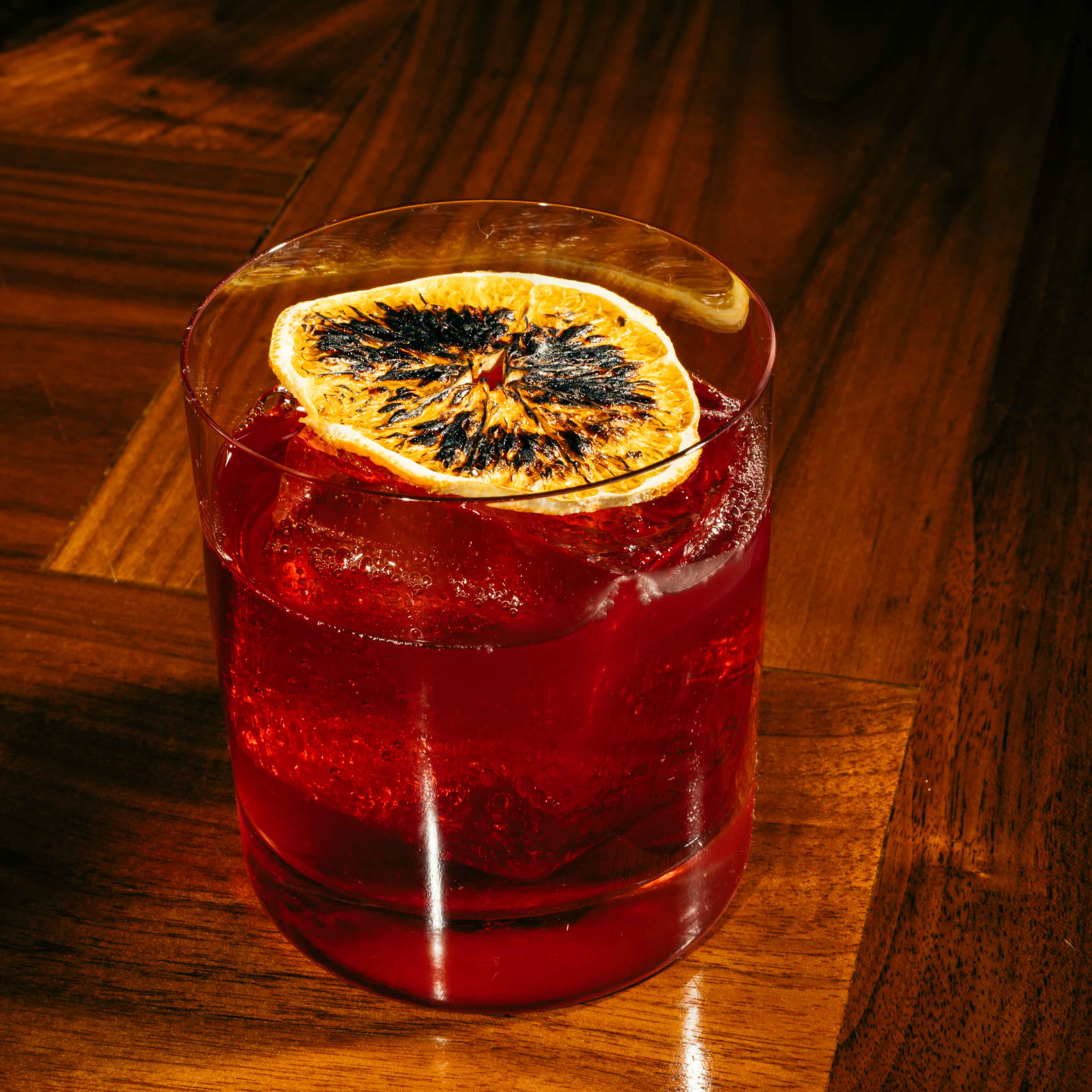 Rye, Bonal, Braulio, Cherry Heering, Cardamom, Peychaud’s, Grapefruit Oil